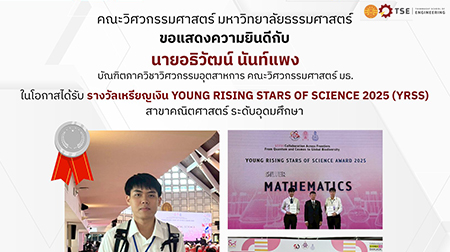 คณะวิศวกรรมศาสตร์ มธ. ในโอกาสได้รับ รางวัลเหรียญเงิน YOUNG RISING STARS OF SCIENCE 2025 (YRSS) สาขาคณิตศาสตร์ ระดับอุดมศึกษา