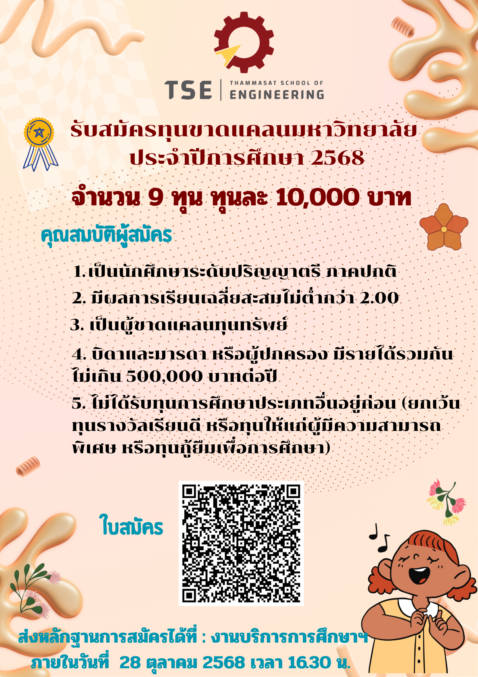 รับสมัครทุนขาดแคลน มธ. สมัครได้ตั้งแต่บัดนี้ - 28 ตุลาคม 2568