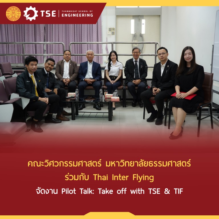 คณะวิศวกรรมศาสตร์ มหาวิทยาลัยธรรมศาสตร์ ร่วมกับ Thai Inter Flying จัดกิจกรรม Pilot Talk: Take off with TSE & TIF เพื่อเปิดโลกอาชีพด้านการบินให้นักศึกษาได้ทำความเข้าใจอย่างใกล้ชิด ทั้งเส้นทางการทำงาน บทบาทหน้าที่ และประสบการณ์จริงจากผู้เชี่ยวชาญในแวดวงอากาศยาน อาทิ นักบิน และครูฝึกการบิน