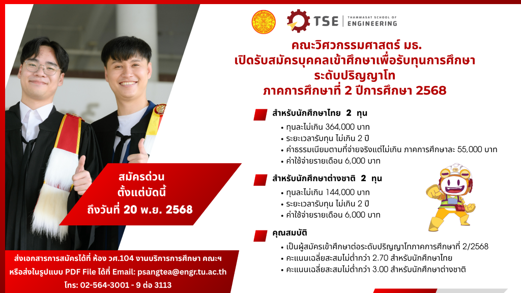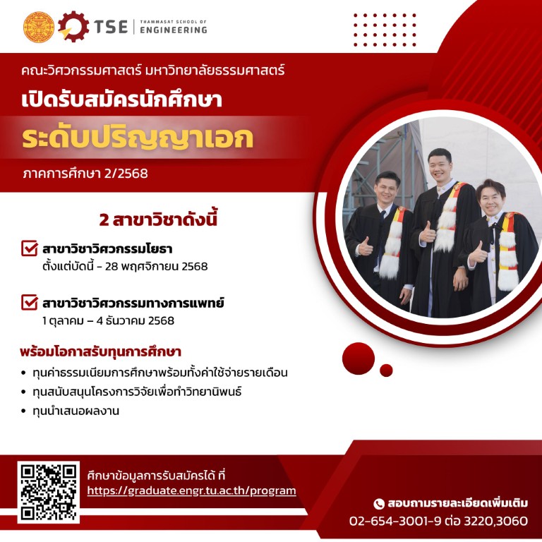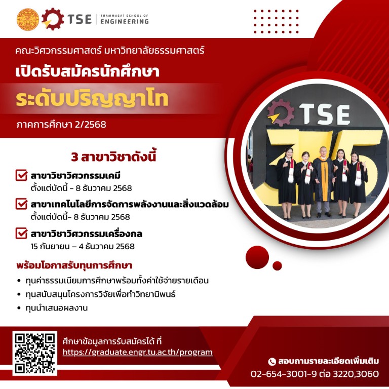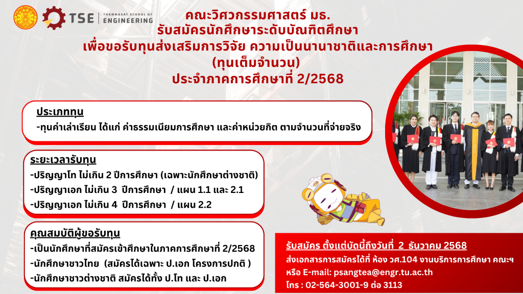 เปิดรับสมัครนักศึกษาระดับบัณฑิตศึกษา ประจำภาคการศึกษา 2/2568