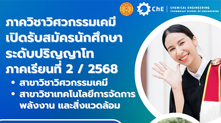 ภาควิชาวิศวกรรมเคมี คณะวิศวกรรมศาสตร์ มหาวิทยาลัยธรรมศาสตร์ รับสมัครตั้งแต่ บัดนี้ – 8 ธันวาคม 2568